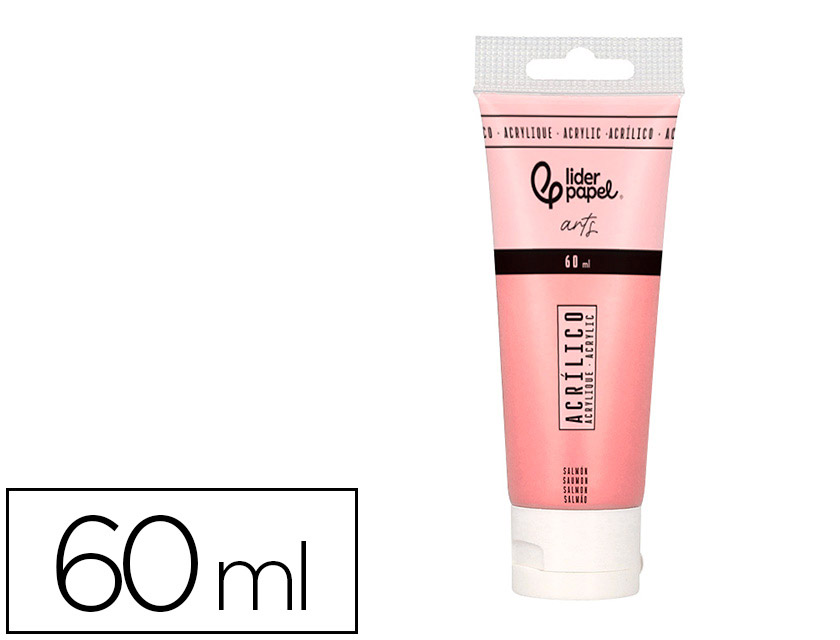 Pintura acrílica liderpapel tubo de plástico de 60 ml color Salmón. Las pinturas acrílicas son muy apreciadas por su rápido tiempo de secado, lo quepermite a los artistas trabajar de manera eficiente y aplicar múltiples c apas en poco tiempo.Una vez secas, las pinturas acrílicas son resistentes al agua, lo que las hace duraderas y adecuadas para una variedad de aplicaciones.Correcta aplicación con los pinceles sintéticos o pelo de cerda de Liderpapel.Características Principales- Versatilidad: Pueden diluirse con agua para crear efectos similares a la acuarela o aplicarse directamente desde el tubo para obtener texturas gruesas y opacas.- Colores Vibrantes: Ofrecen una amplia gama de colores brillantes y saturados que se mantienen en estables con el tiempo.- Superficies: Son adecuadas para diversas superficies, incluyendo lienzo, papel, madera, y más.Ventajas- Secado Rápido: Permite trabajar rápidamente y realizar correcciones casi inmediatas.- Fáci: Las herramientas y pinceles se limpi