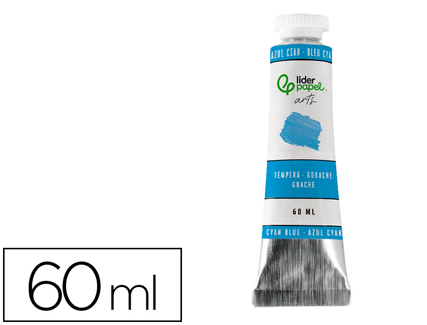 Pintura gouache/témpera liderpapel tubo de aluminio de 60 ml color Azul cián. La témpera es una pintura a base de agua que ha sido utilizada durantesiglos, conocida por su opacidad y capacidad para producir colores vibran tes y mates. Características Principales Opacidad: La témpera es altamente opaca, lo que permite cubrir completamente las capas anteriores de pintura y crear colores sólidos y uniformes. Secado Rápido: Se seca rápidamente, lo que es ideal para proyectos que requieren múltiples capas en poco tiempo. Textura Mate: Una vez seca, la témpera tiene un acabado mate, lo que la diferencia de otras pinturas como los óleos o acrílicos que pueden tener un brillo más pronunciado. Técnicas y Aplicación Capas y Mezclas: La témpémpera se puede aplicar en capas finas o gruesas y se mezcla fácilmente con agua para ajustar la consistencia y la transparencia. Superficies: Es adecuada para una variedad de superficies, incluyendo papel, cartón, madera También se utiliza en murales y decora