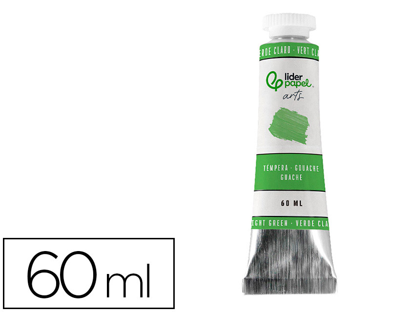 Pintura gouache/témpera liderpapel tubo de aluminio de 60 ml color Verde claro. La témpera es una pintura a base de agua que ha sido utilizada durante siglos, conocida por su opacidad y capacidad para producir colores vibrantes y mates. Características Principales Opacidad: La témpera es altamente opaca, lo que permite cubrir completamente las capas anteriores de pintura y crear colores sólidos y uniformes. Secado Rápido: Se seca rápidamente, lo que es ideal para proyectos que requieren múltiples capas en poco tiempo. Textura Mate: Una vez seca, la témpera tiene un acabado mate, lo que la diferencia de otras pinturas como los óleos o acrílicos que pueden tener un brillo más pronunciado. Técnicas y Aplicación Capas y Mezclas: La té témpera se puede aplicar en capas finas o gruesas y se mezcla fácilmente con agua para ajustar la consistencia y la transparencia. Superficies: Es adecuada para una variedad de superficies, incluyendo papel, cartón, mader. También se utiliza en murales y deco