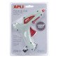 La pistola de cola termofusible funde las barras de silicona y la transforman en adhesivo líquido. Perfecta para pequeñas reparaciones, trabajos manuales, bricolaje, etc. Permite gran precisión y es apta para diferentes tipos de materiales: plástico, cerámica, piel, textiles, madera, etc. Incluye 2 barras.
