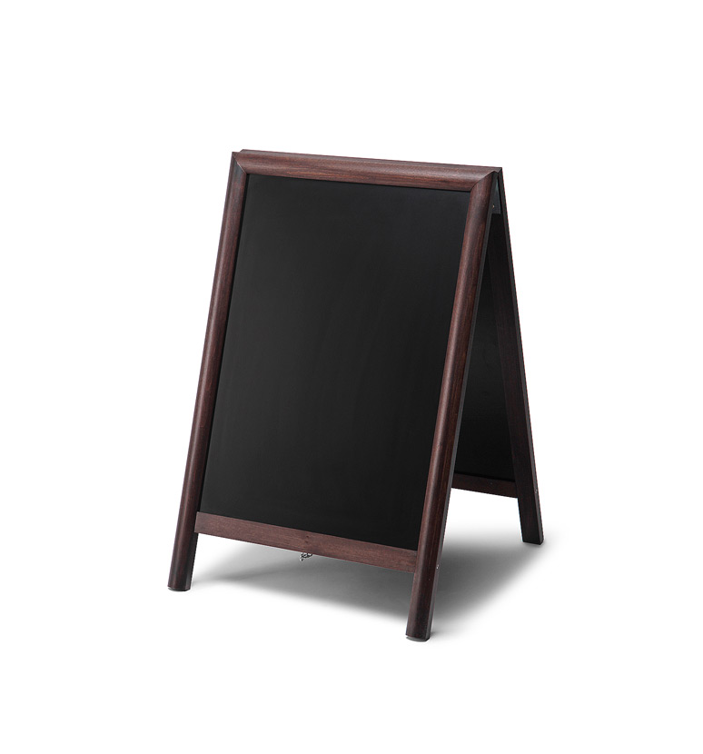 Destaca tu negocio con nuestro Elegante Caballete de Pizarra Premium. Fabricado con perfiles de madera de alta calidad, en un tono marrón oscuro y con un acabado mate que lo protege. Ideal tanto para interiores como para áreas exteriores protegidas. Puedes escribir tus anuncios con marcadores de tiza líquida, que se remueven fácilmente con una esponja húmeda. ¡Crea tus mensajes de manera rápida y sencilla con este Caballete Premium! Adecuado para interiores y exteriores cubiertos. Al ser un producto natural, puede haber pequeñas variaciones en los colores.