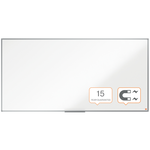 Pizarra magnética de acero con un marco de aluminio anodizado. Se fija mediante a la pared desde las esquinas y se suministra con una bandeja para rotuladores. La superficie de la pizarra magnética de acero pintado ofrece un mayor nivel de borrado para un uso frecuente. Tamaño: 1800x900mm.