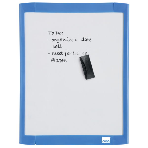 Esta mini pizarra magnética viene en una variedad de colores de marco, con un rotulador y un borrador de pizarra a juego. Con un elegante marco en una variedad de colores, rosa, azul, negro o verde. Cualquiera que sea el color que recibas, puedes estar seguro de que se adaptará a cualquier entorno. Estas divertidas y coloridas pizarras son perfectas para el montaje en la pared o para usar como pizarra portátil, y se completan con almohadillas adhesivas de montaje en pared e imanes para usar en superficies magnéticas como la nevera. Móntalas en orientación vertical u horizontal. Tamaño: 216x280 mm.