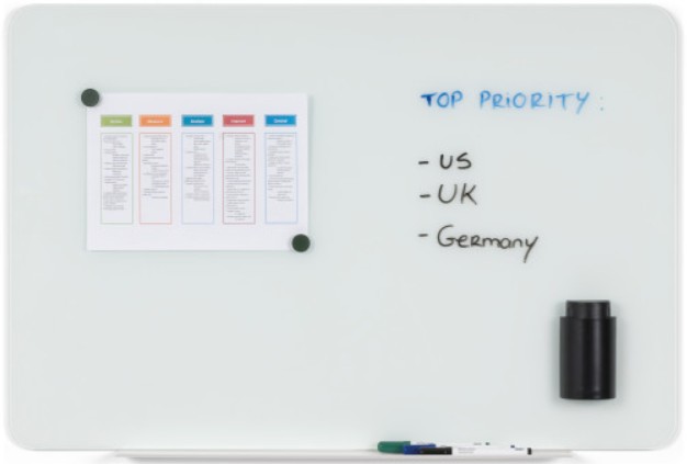 Superficie de vidrio templado de alto rendimiento (4 mm): permite una escritura fluida y sin esfuerzo, con un borrado perfecto sin dejar manchas ni sombras fantasma.