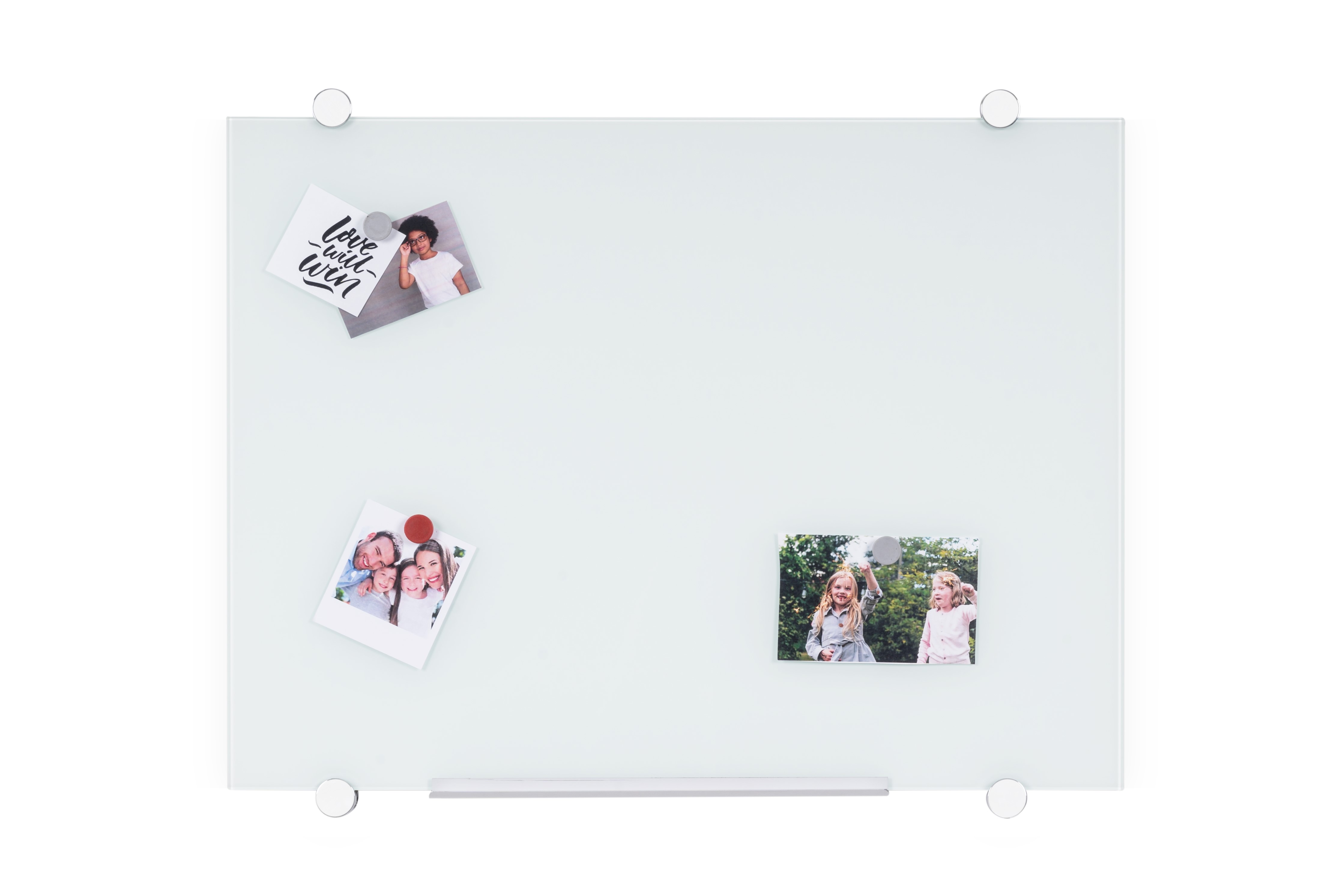 Pizarra de vidrio magnético para escritura con rotuladores de borrado en seco, sin marco.