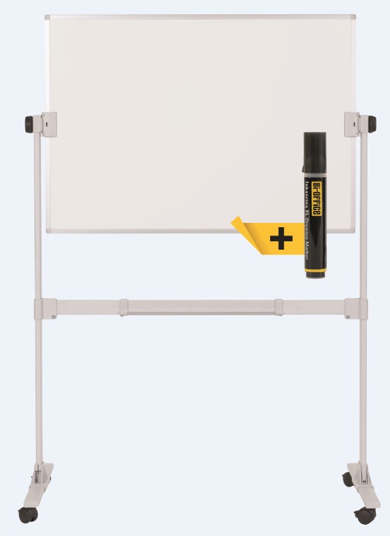 • Diseño giratorio: Su mecanismo de volteo sobre un eje horizontal permite alternar rápidamente entre los dos lados de la pizarra, maximizando el espacio de trabajo disponible y optimizando la organización de ideas y proyectos.