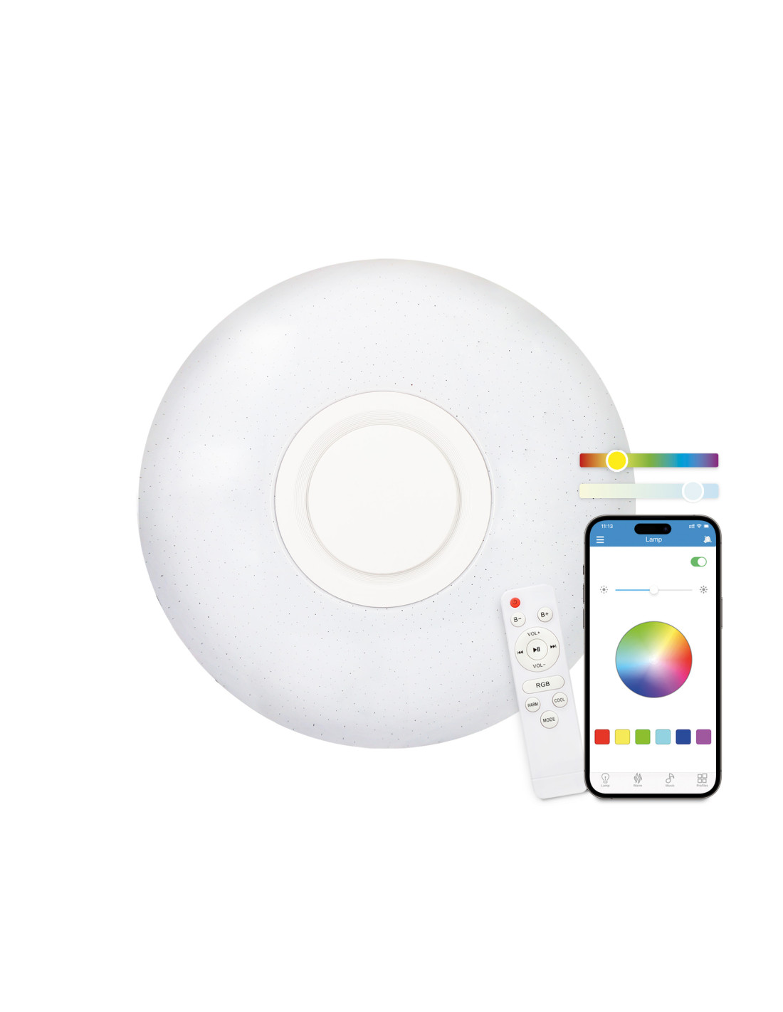 Es imposible no fijarse en él. Nuestro plafón conectado Rainbow incluye una enorme variedad de modos de luz RGB y temperaturas de color para que crear el ambiente que quieres no sea un problema. Además, incluye altavoz y modos de luz que bailan al ritmo de la música.