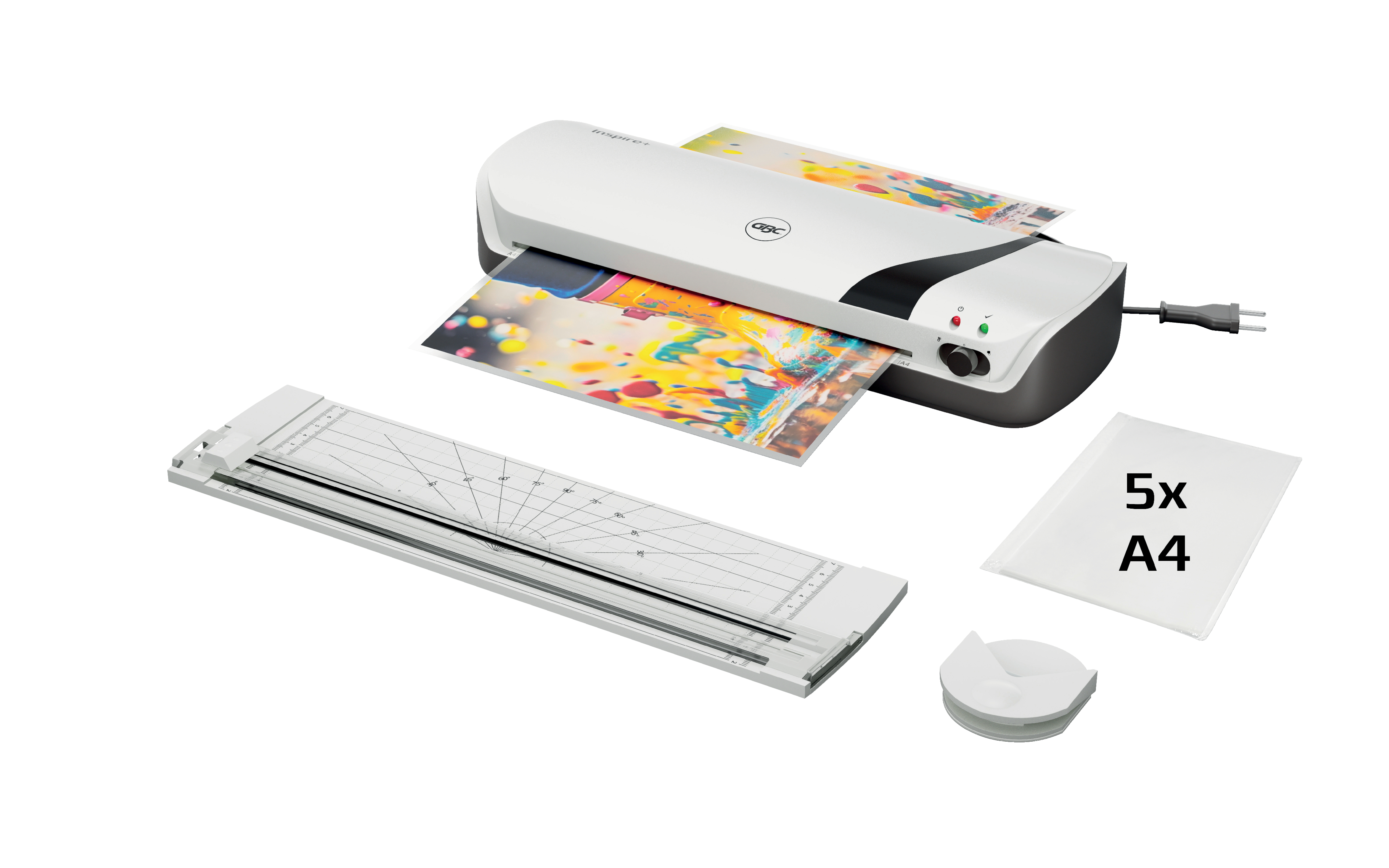 Ligera y compacta, la plastificadora GBC Inspire+ A4 es perfecta para el usuario doméstico o de oficina en casa para sus necesidades de plastificación diarias. Esta plastificadora de papel es fácil de utilizar mediante un único interruptor y tiene un tiempo de calentamiento rápido de 4 minutos. Puede plastificar bolsas de plastificación de hasta 125 micras para dar a tus documentos un acabado profesional. La plastificadora Inspire+ GBC también dispone de un modo de plastificación en frío para los materiales sensibles al calor.Esta plastificadora con bolsas te permite ser creativo al momento, ¡sólo necesitas imaginación! Paquete de inicio con 5 bolsas de tamaño A4 incluidas (2x75 micras). Color blanco.