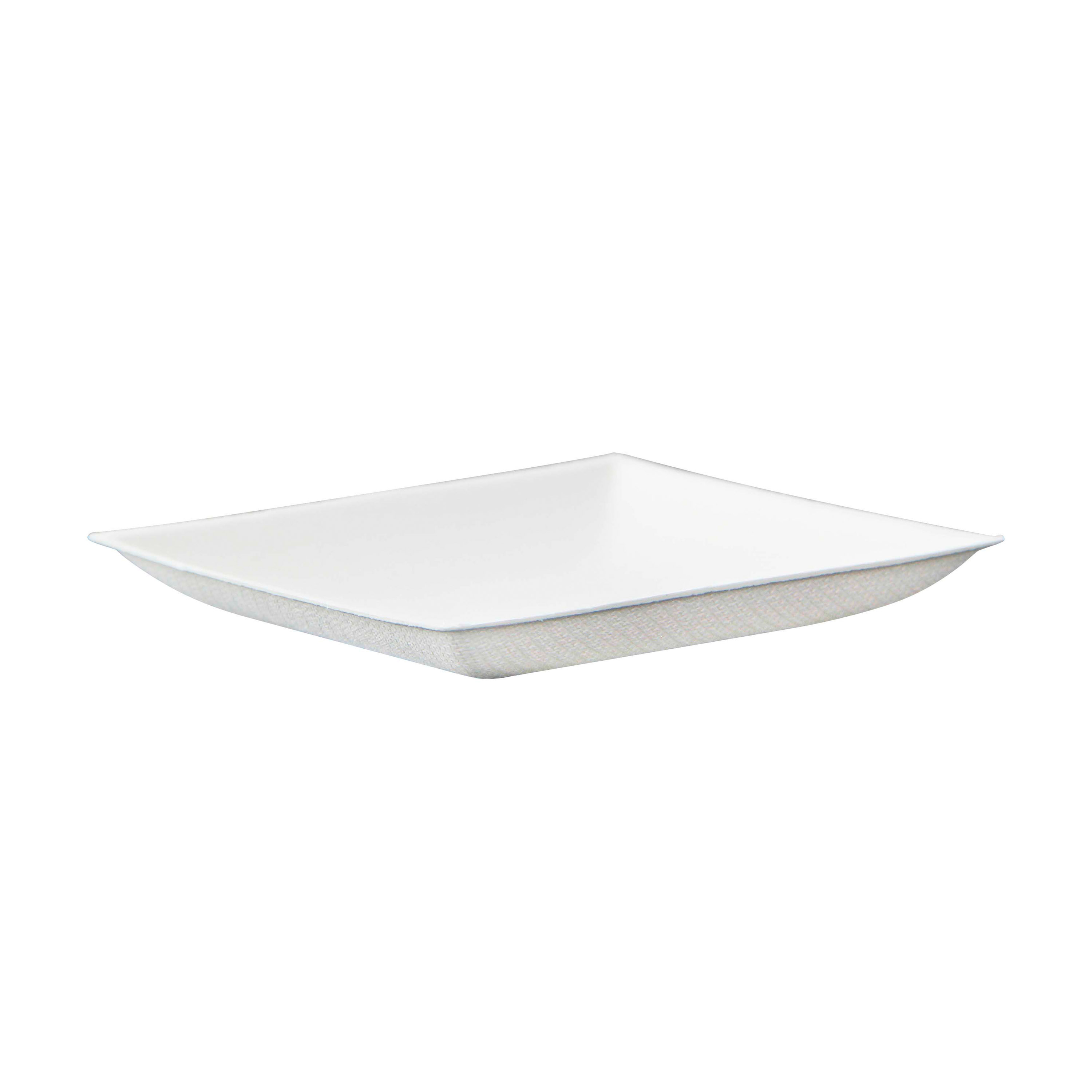 Plato cuadrado de pulpa blanca, con dimensiones de 9 x 9 cm, perfecto para servir tus platillos de manera atractiva. Fabricado en pulpa, es una opción ecológica y sostenible, 100% reciclable. Apto para microondas y congelador, garantiza comodidad y facilidad en su uso. Ideal para el sector horeca, donde el diseño y la funcionalidad son clave. Paquete de 100 unidades.
