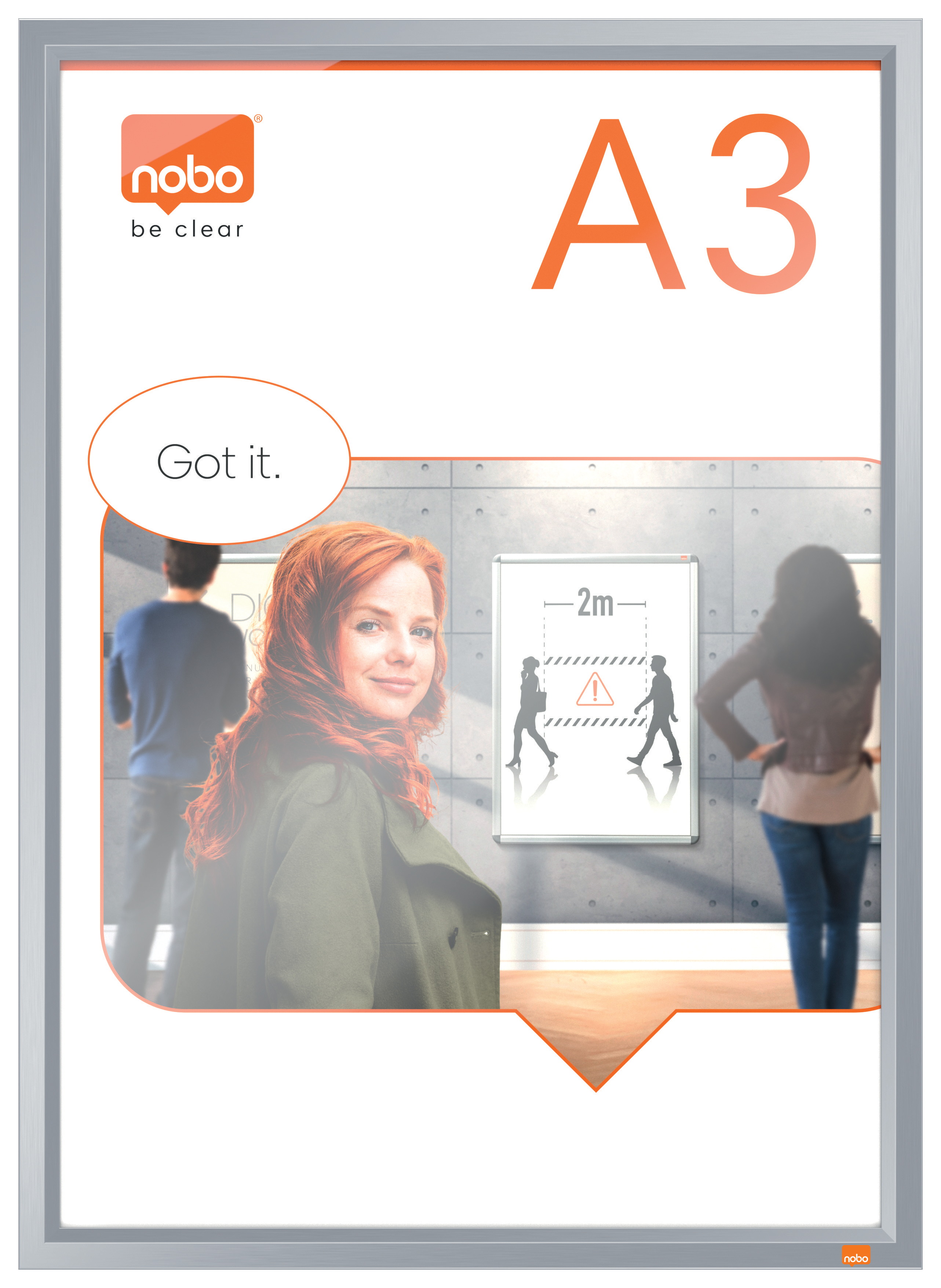 Descripción detalladaMarco para póster Nobo A3 con marco de clip anodizado, soporte para carteles de montaje en pared, fijación de esquina pasante, esquinas en inglete, Impression Pro, anodizado