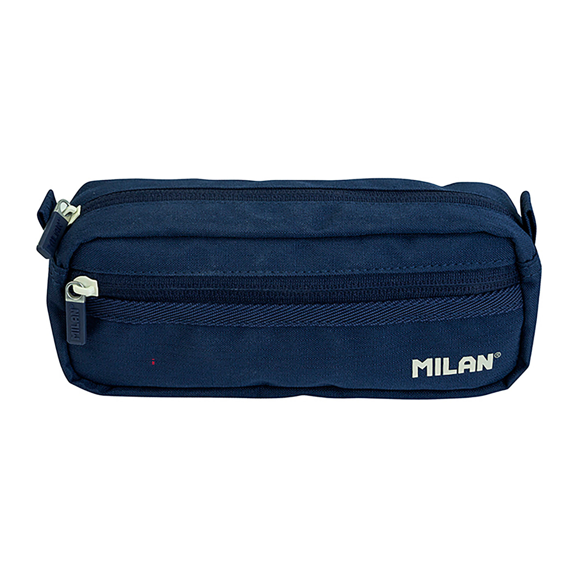 Estuche rectangular con 2 cremalleras. Serie 1918, color azul marino. Inspirada en los colores y diseño originales de las gomas de borrar MILAN. Con un pequeño bolsillo frontal y un gran compartimento principal. Forro interior estampado azul marino con una cuadrícula que evoca las formas de las gomas MILAN. Tejido exterior 'ripstop': ligero y resistente a la rotura y rasgaduras. Utiliza una técnica especial que teje hilos gruesos de refuerzo a intervalos regulares en un patrón entrecruzado. Composición tejido: exterior y forro interior de poliéster. Medidas: 21 x 8,5 x 6,1 cm.
