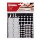 200 x 200 mm - 2 piezas negras Ø 38 mm - 8 piezas blancas Ø 20 mm - 64 piezas negras Ø 15 mm - 36 piezas negras Ø 10 mm - 32 piezas negras