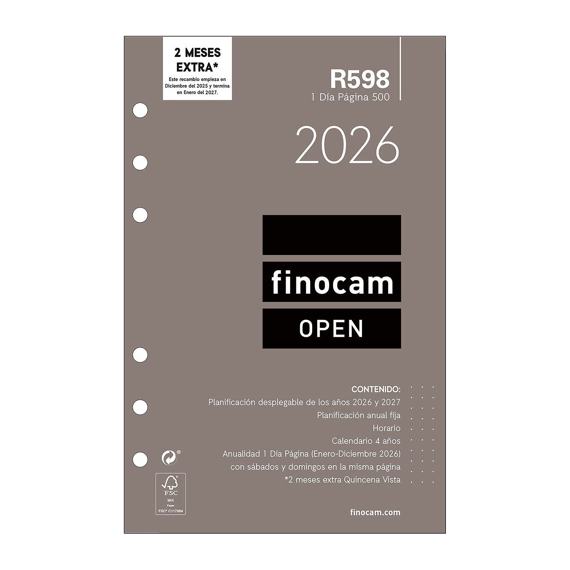 Recambio anual para agendas de anillas Finocam Open. La anualidad contiene la información útil relativa a: onomástica, festivos nacionales, cambios de estación, cambios de hora e inicios del nuevo año chino, musulmán, ortodoxo y hebreo.