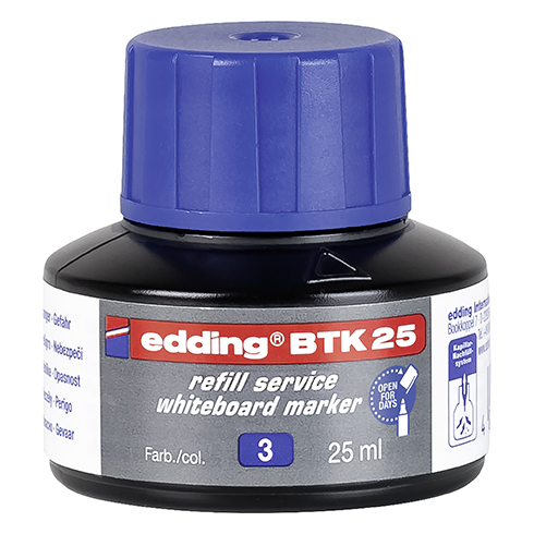 Recarga de tinta por sistema de capilaridad, ideal para recargar fácil y limpiamente casi todos los rotuladores de pizarra edding.