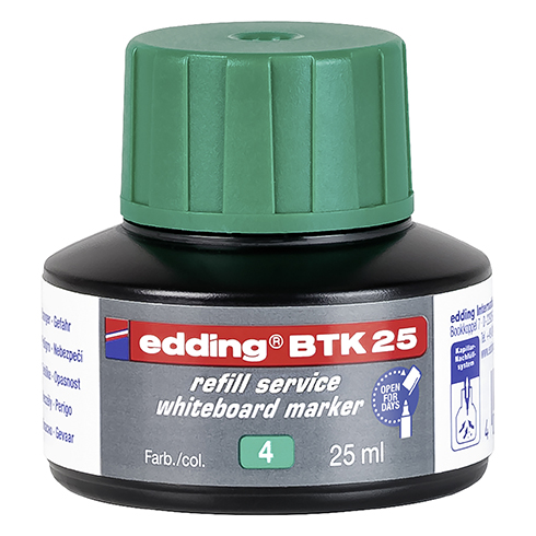 Recarga de tinta por sistema de capilaridad, ideal para recargar fácil y limpiamente casi todos los rotuladores de pizarra edding.