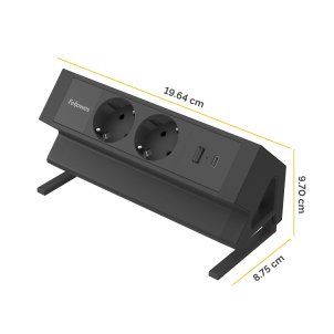 Regleta de sobremesa de fácil acceso, al tiempo que permite ahorrar espacio y mantener un orden en el puesto de trabajo instalandose en el borde del escritorio. Abrazadera de montaje superior fácil de instalar que se adapta a escritorios de 10 a 45 mm de grosor. Equipada con 2 toma de corriente, 1 puerto USB A y 1 puerto USB C. Incorpora un cable de alimentación de 2 metros con enchufe, lo que le proporciona flexibilidad de colocación y una instalación sencilla. Garantía extendida de 5 años.