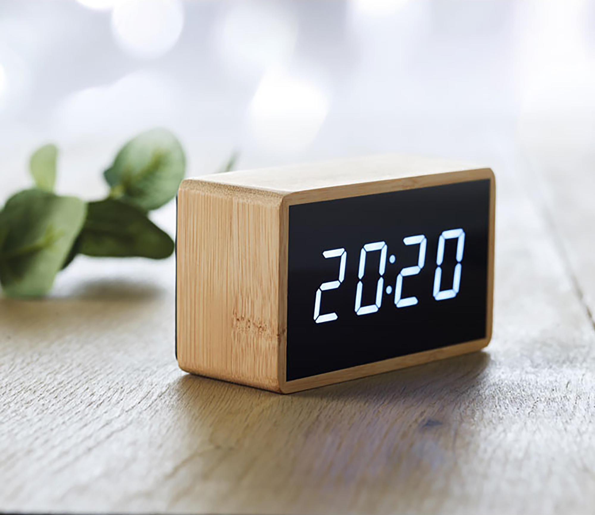Descripción detalladaReloj despertador con display LED blanca. Indica la hora y la temperatura. Carcasa de bambú. Adaptador de enchufe AC-DC de 2 pines incluido. El bambú es un producto natural, puede haber ligeras variaciones en el color y el tamaño por artículo.