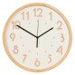 Reloj de pared estilo nórdico con marco de madera acabado natural. Esfera lacada blanca superpuesta con los números tallados en la madera. Agujas negras que contrastan con el fondo blanco. Movimiento de cuarzo silencioso. Diámetro 41 cm. Funciona con 1 pila LR6/AA (incluida)