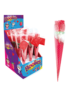 Descripción detalladaCaramelos de goma en forma de rosa.Ingredientesazúcar, jarabe de glucosa, agua, gelificante (pectina), acidulante (E-330), corrector de acidez (E-331), aroma, colorantes (E-129, E-133, E-160a)