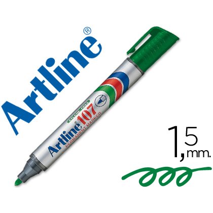 Rotulador permanente con punta redonda de fibra acrílica. Válido para porcelana, cristal, cartón, metal, plástico, caucho, madera, etc. Tinta resistente al agua, a la luz y al roce. Secado rápido. Longitud de escritura: 550 m. Trazo aproximado de 1,5 mm.