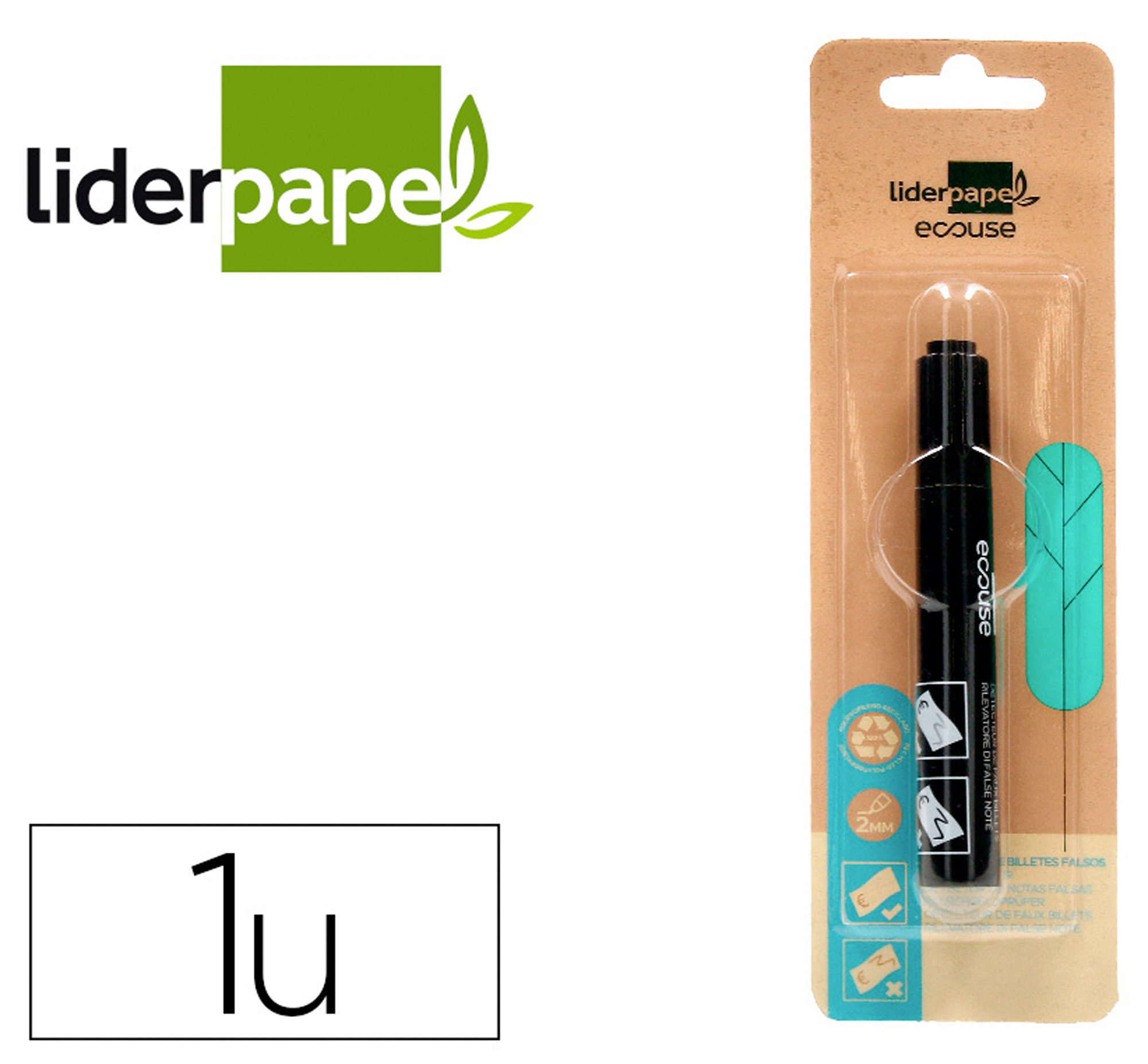 Descripción detalladaVerifica la autenticidad de los billetes de Euro y de las principales divisas del mundo. Ahora con cuerpo de plástico 100% reciclado, respetuoso con el Medioambiente. Punta redonda. Trazo de 3 mm.