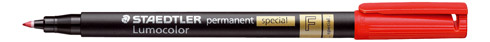 Descripción detalladaRotulador Lumucolor Permanente Special Staedtler Rojo. Inodoro, secado rápido, resistente al agua, al borrado y a la luz.Punta Fina de 0.6mm. Tinta sin Xileno ni tolueno.