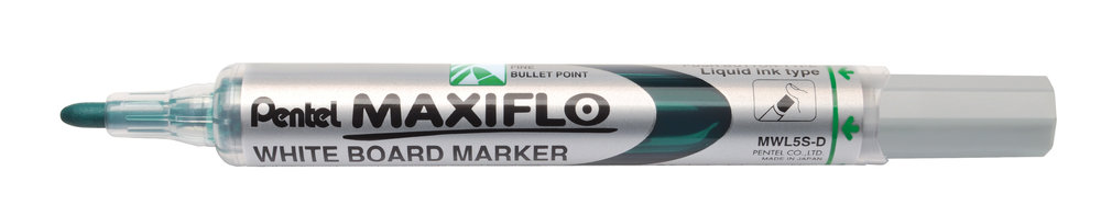 Marcador de pizarra Maxiflo. Formato fino. Punta cónica. Marcador de tinta líquida y larga duración de borrado en seco. Único con pulsador trasero para el bombeo de la tinta cuando se precisa. Dura el triple de lo normal, al aprovecharse hasta su última gota, con la misma intensidad de principio a fin. Apto para pizarra blanca, ceramica o de papel. depósito de tinta visible y capuchón ventilado. Punta de fibra que no se deforma con el uso. Punta cónica de 4 mm. y trazo de 2 mm.