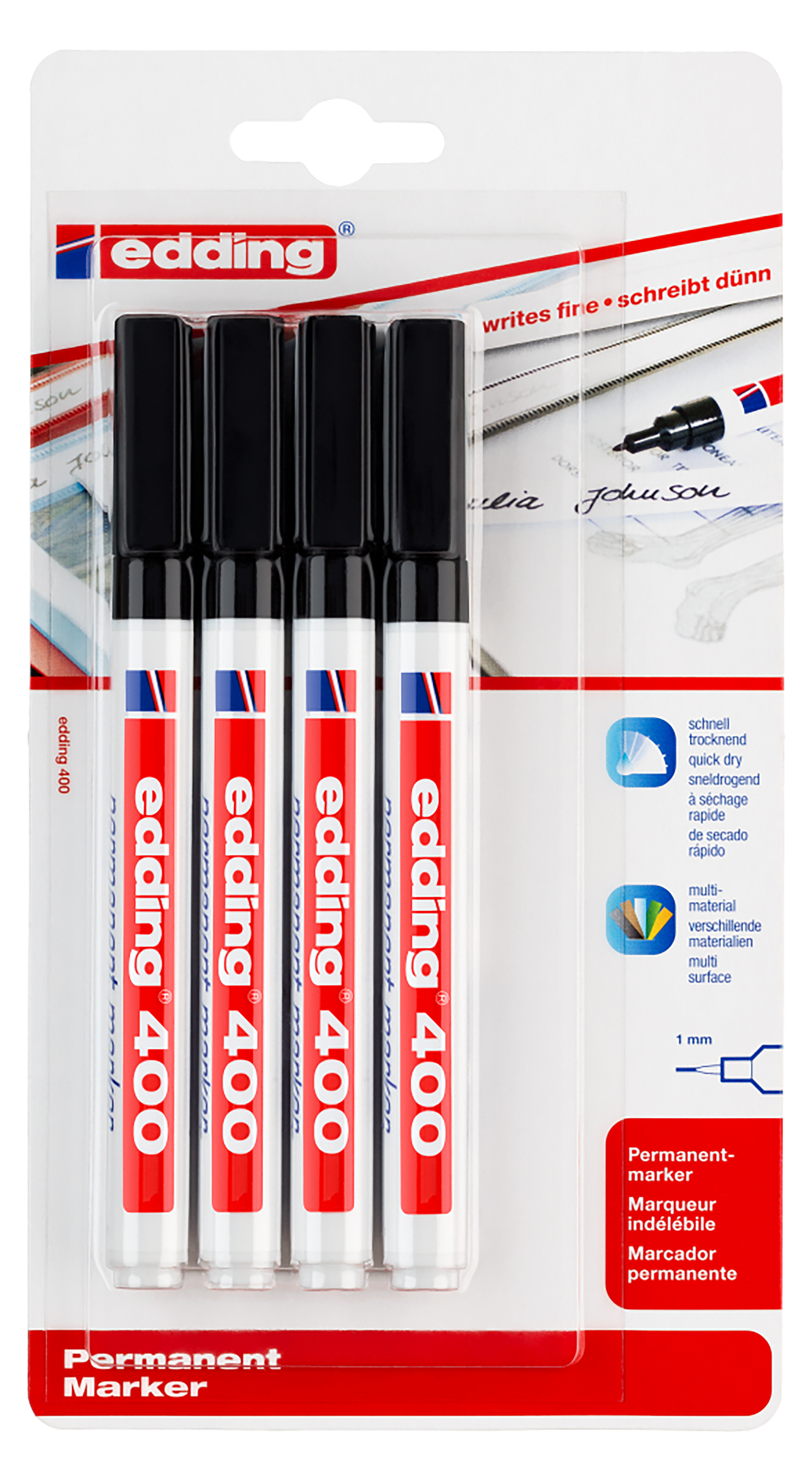 Rotulador permanente para marcar y escribir en casi cualquier material, por ejemplo, papel, cartón, metal, plástico y vidrio.