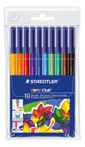 Rotulador con punta de fibra. Tinta base agua lavable. Surtido de 10 colores.