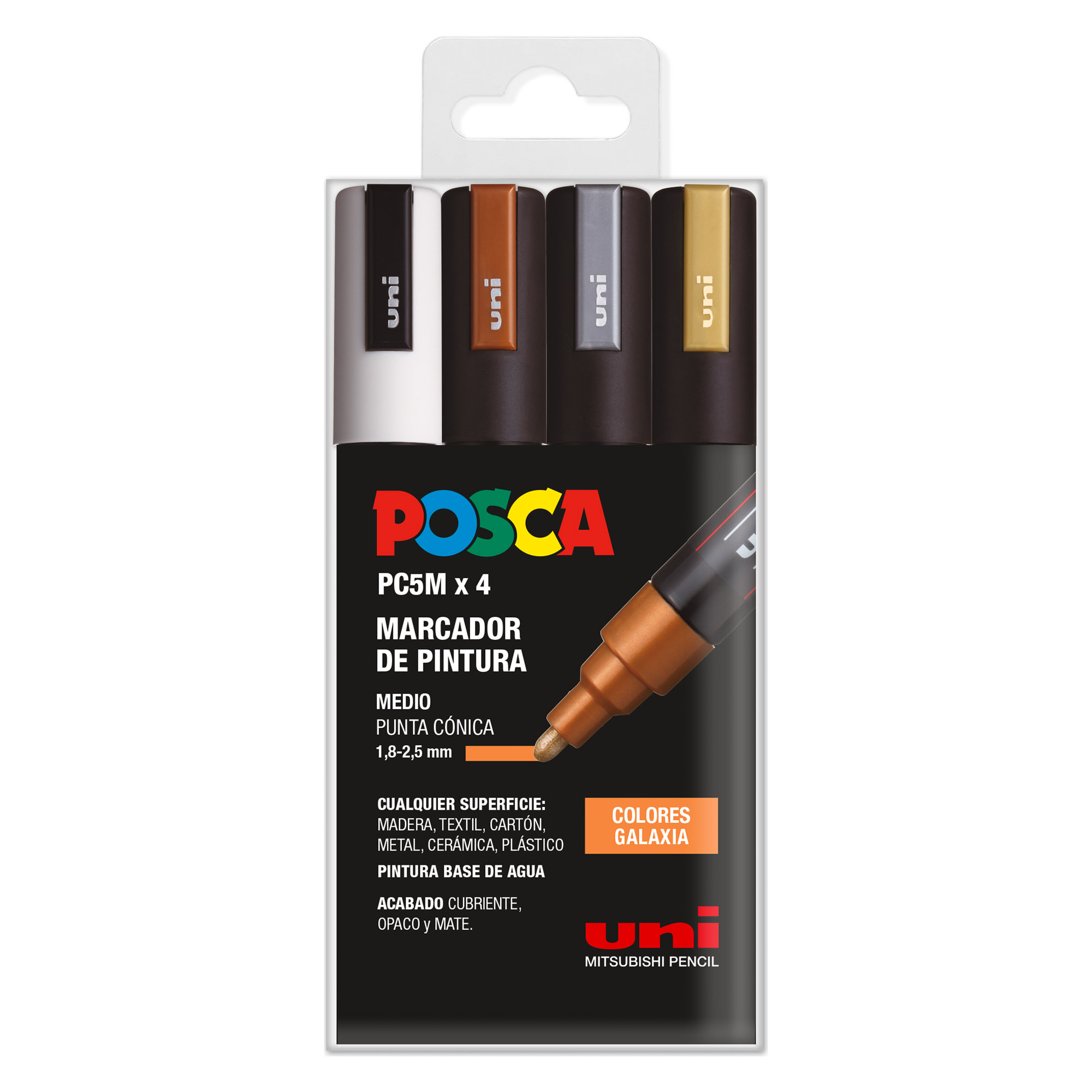 Estuche 4 unidades de marcadores con trazo 1,8 -2,5 mm. PC5M Uni Posca colores galaxia.