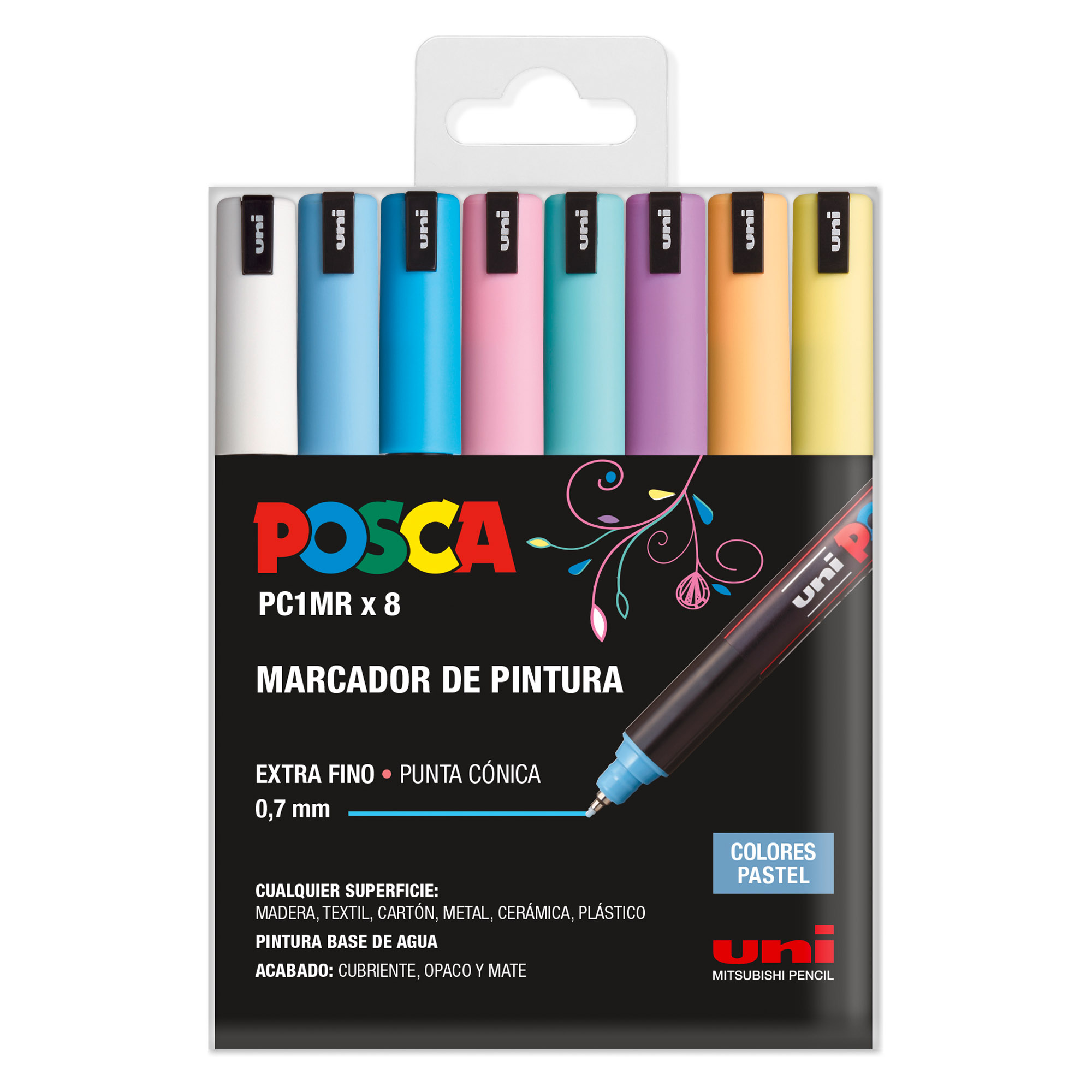 Estuche 8 unidades de marcadores con trazo de 0,7 mm línea extrafina. PC1MR Uni Posca colores pastel.