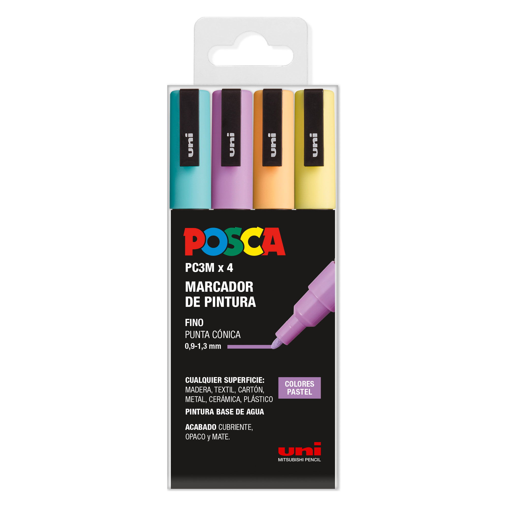 Estuche 4 unidades de marcadores con trazo 0,9- 1,3 mm. PC3M Uni Posca colores pastel.