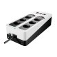- 6 tomas eléctricas: 3 tomas onduladas y protegidas contra sobretensiones + 3 tomas solo protegidas contra sobretensiones.