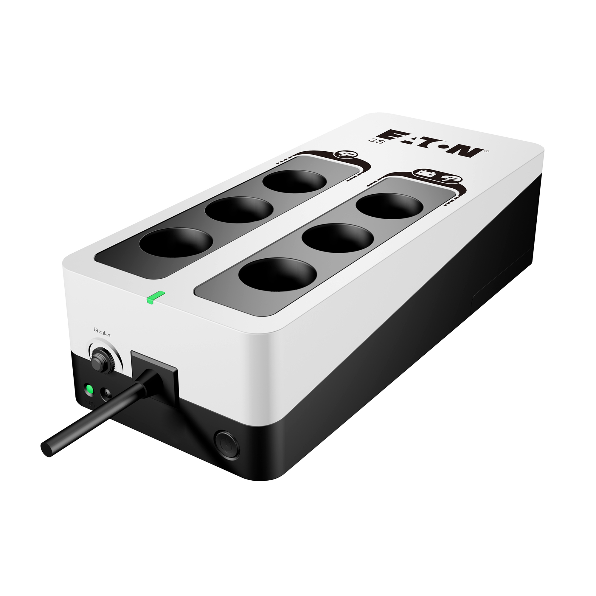 El Sistema de alimentación ininterrumpida SAI o UPS Eaton 3S 450 asegura una protección efectiva de tus equipos en relación con eventos frecuentes, como sobrecargas en la red eléctrica y tormentas. En caso de corte de suministro eléctrico, este UPS funciona con batería y le brinda tiempo suficiente para guardar su trabajo en curso y apagar su ordenador. Para mayor seguridad, el software de apagado, suministrado con el UPS, guarda automáticamente tus datos y cierra sus aplicaciones antes de que su batería se agote. Un disyuntor térmico de 10A protege la instalación de sobrecargas.