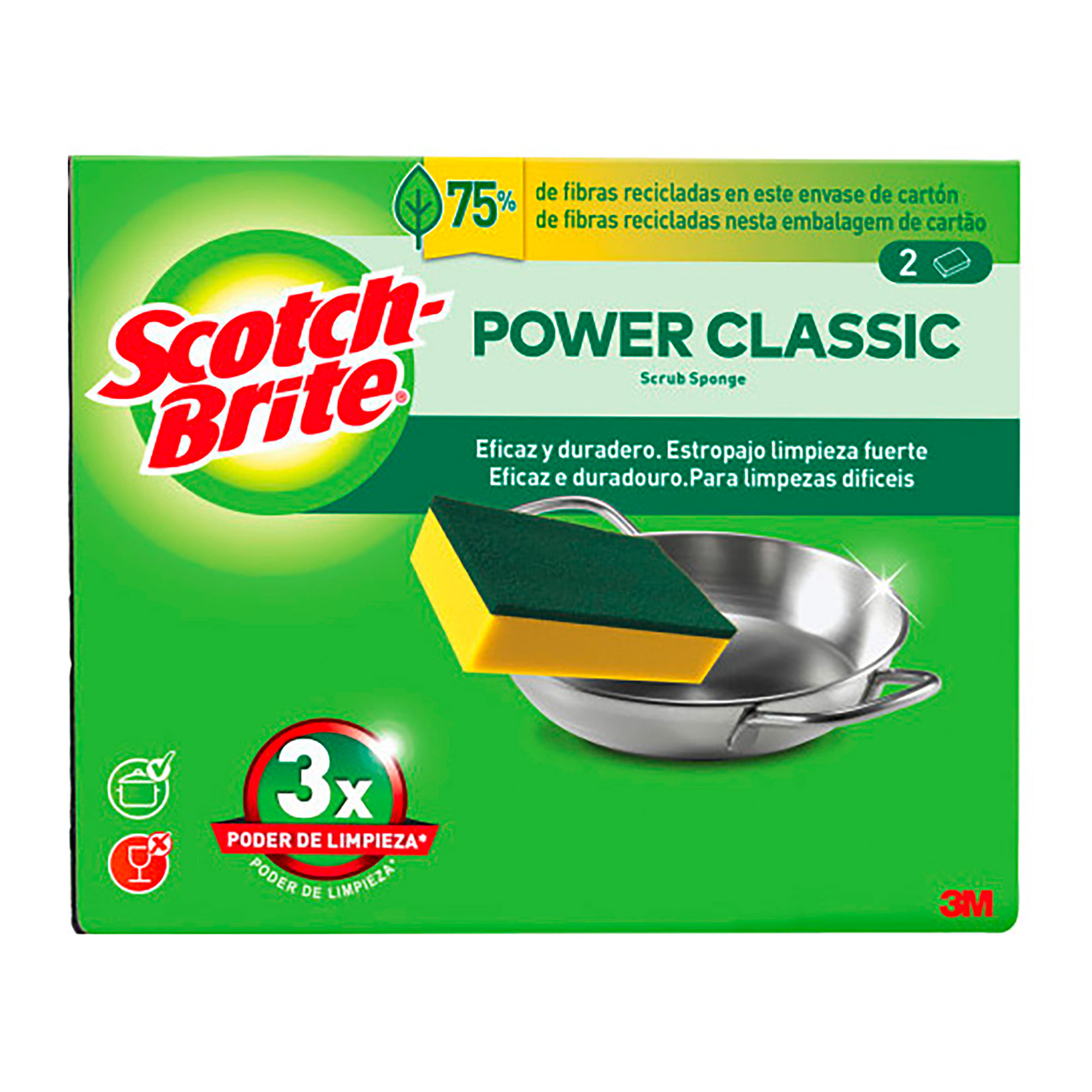 El estropajo clásico Scotch-Brite® es un estropajo duradero y eficaz, diseñado para desincrustar la grasa, los restos de comida quemados y otras manchas domésticas.
