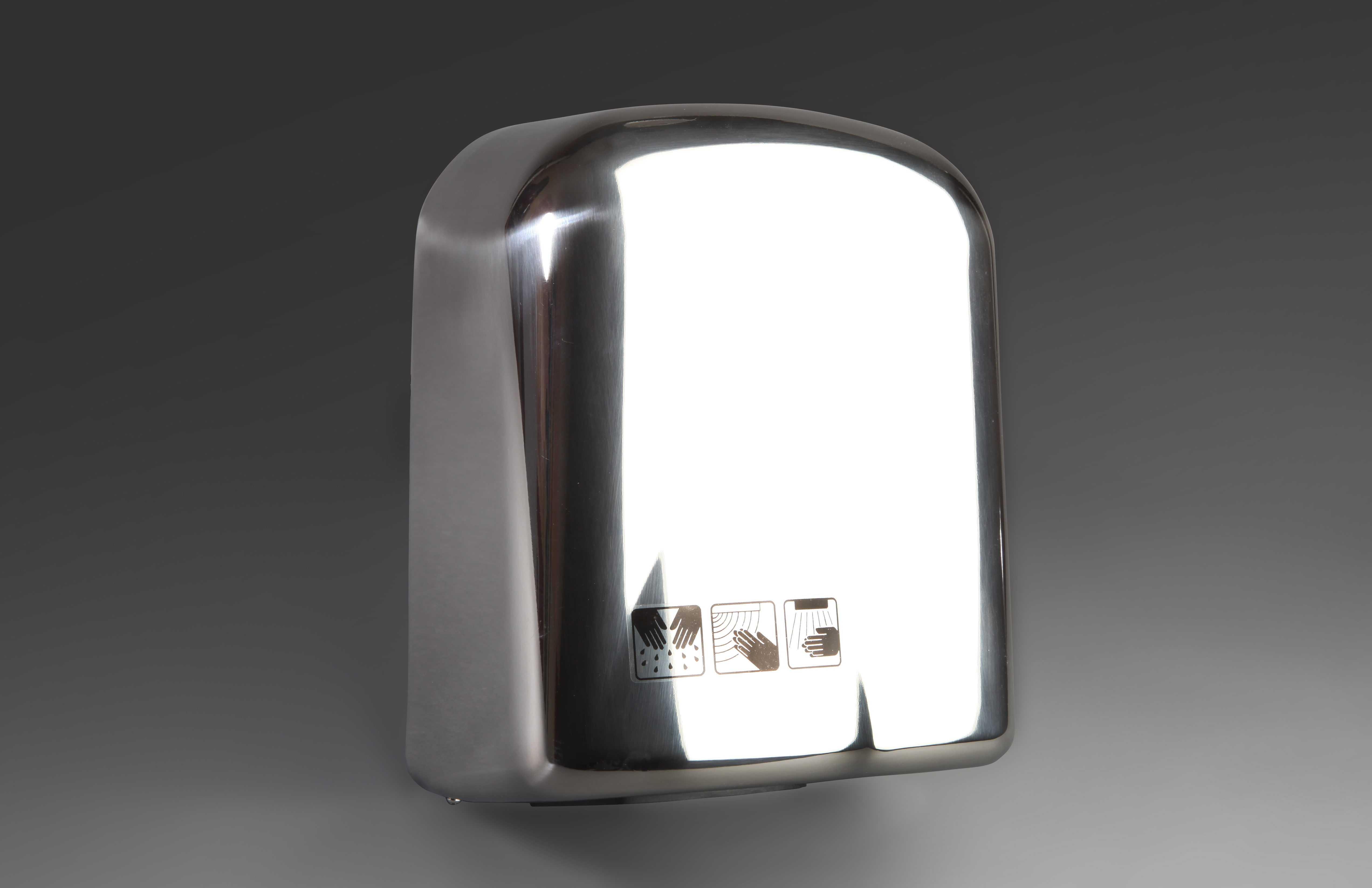 Secador de manos de funcionamiento por sensor de infrarrojos. Fabricado en chapa de acero brillo inox de 1,0mm de espesor. Incorpora doble protección térmica sobre los elementos de temperatura. Incluye toma de tierra sobre la carcasa. Medidas (HxAxP): 29x23x15cm