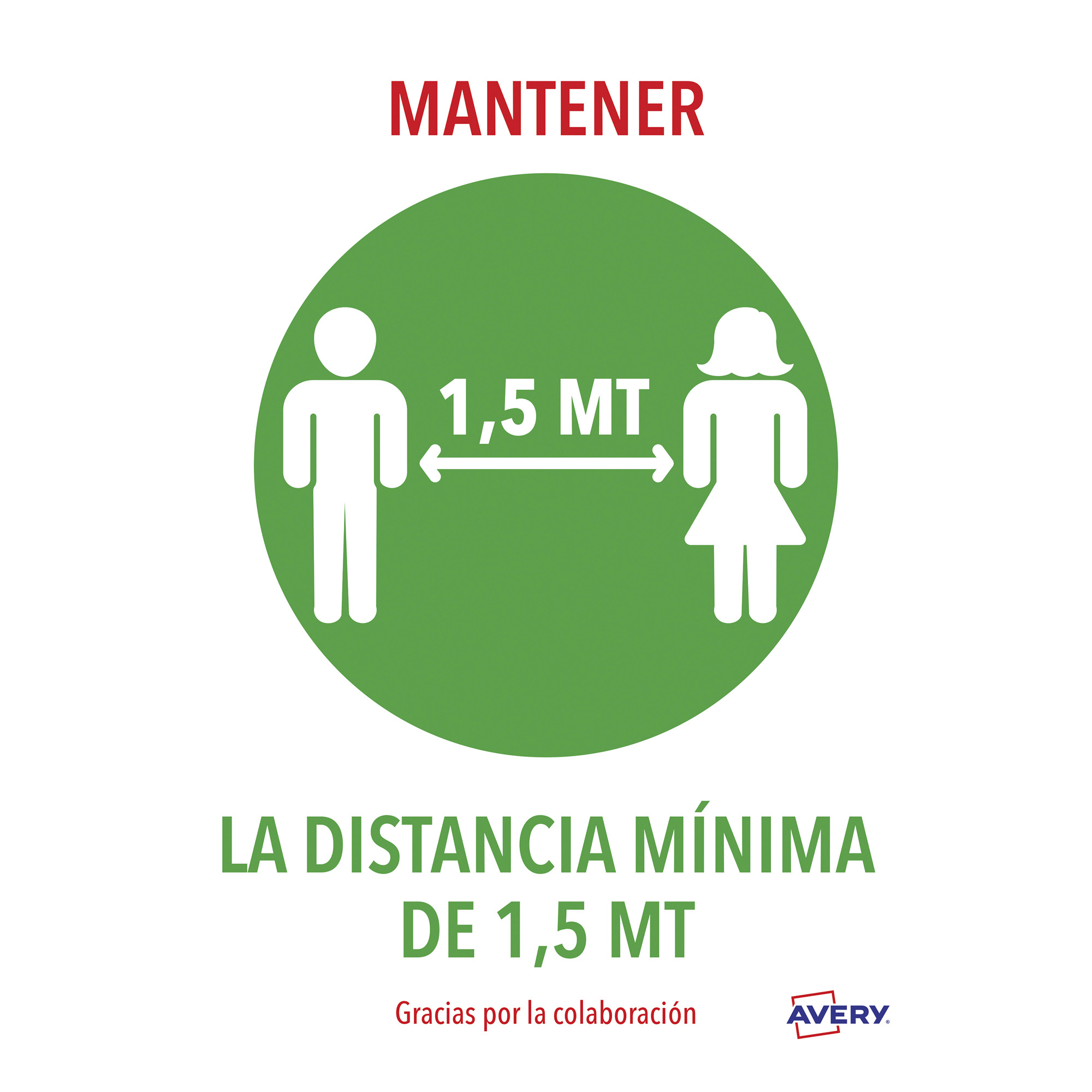 Señales adhesivas preimpresas, resistentes y listas para el uso "Mantener la distancia mínima de 1,5 mt"