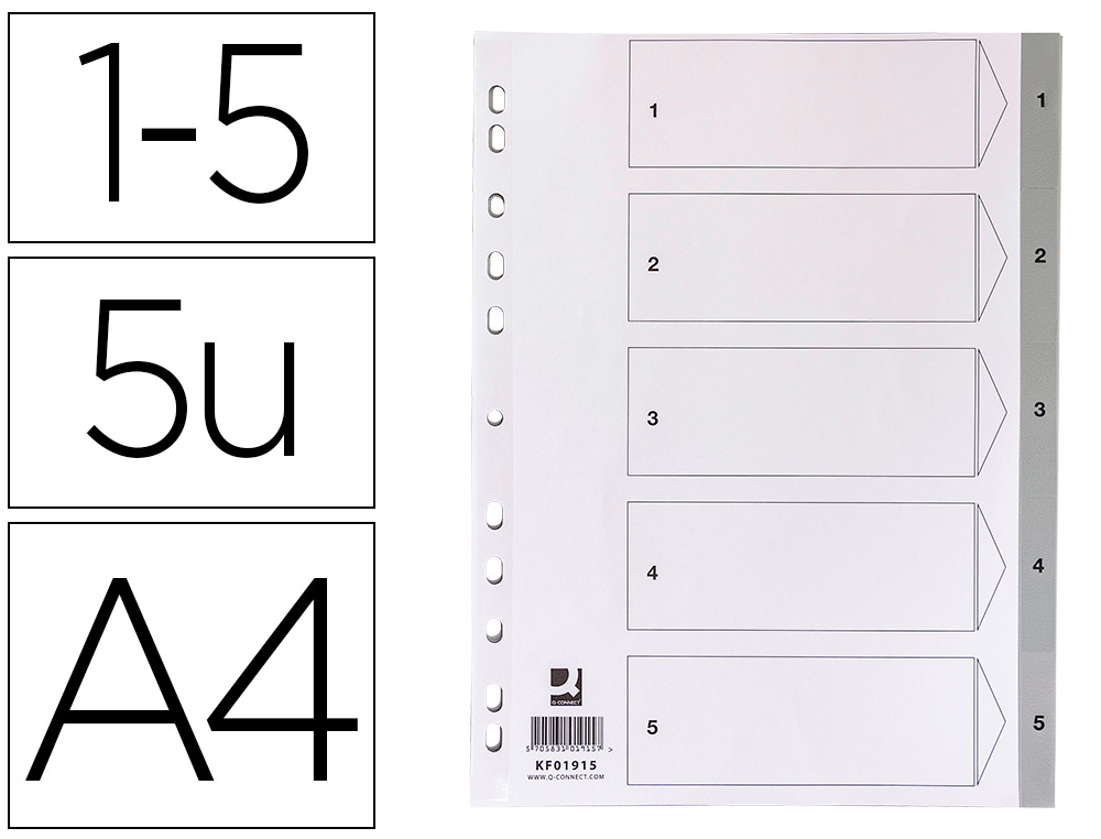 Descripción detalladaFabricados en PVC para la clasificación y ordenación numérica de los documentos. 120 micras. En color gris con carátula de cartulina para índice. Multitaladro. Formato Din A4.