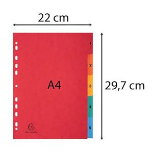 Estos separadores, con 5 divisiones, están fabricados en cartulina lustrada flexible de 225 g, lo que les proporciona durabilidad y resistencia. Gracias a su diseño surtido, podrás identificar fácilmente cada sección de tus archivos.