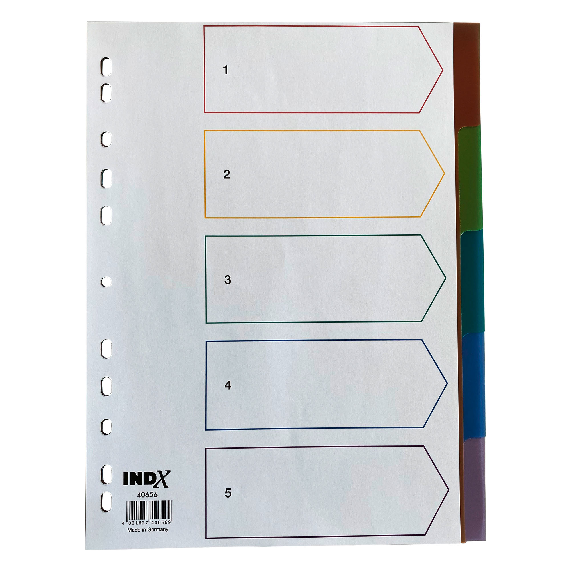 Descripción detalladaSeparadores fabricados en polipropileno translúcido de colores de 150 micras. 5 divisiones. Formato A4. Incluye portada. Fabricado en Alemania.Referencia de Fabricante: 40656