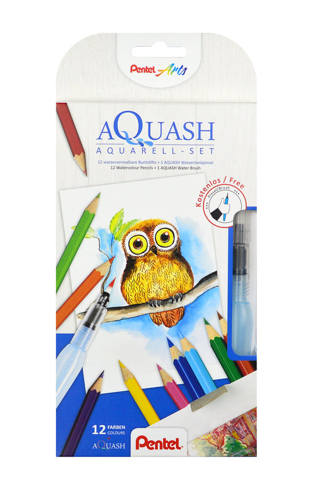 Set de lápices acuarelables. Incluye 12 lápices de madera acuarelables de colores brillantes y un pincel con depósito de agua FRH-M. Los lápices se aplican suavemente y con la ayuda del pincel de agua se mezclan fácilmente para obtener tonos sutiles, degradados y mezclas de colores. Punta muy resistente.
