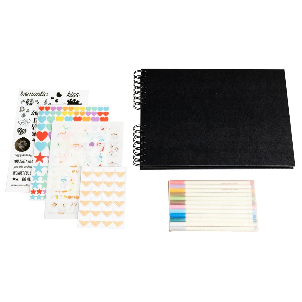 Descubre nuestro completo kit de scrapbooking ScrapAddict con un álbum de espirales negro de alta calidad y todos los materiales necesarios para resaltar tus recuerdos y expresar tu creatividad.