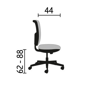 Material: asiento y respaldo acolchado con revestimiento tejido 100% poliéster. Patas de nailon con reposapiés de metal cromado, regulable en altura. Tacos antidezlisantes. Relleno: densidad asiento 40 kg/m³, respaldo 28kg/m³ Medidas: asiento An. 46 x Fon 45 cm, regulable en atura de 61 a 87 cm, respaldo Alt. 41 cm. Mecanismo estándar.
