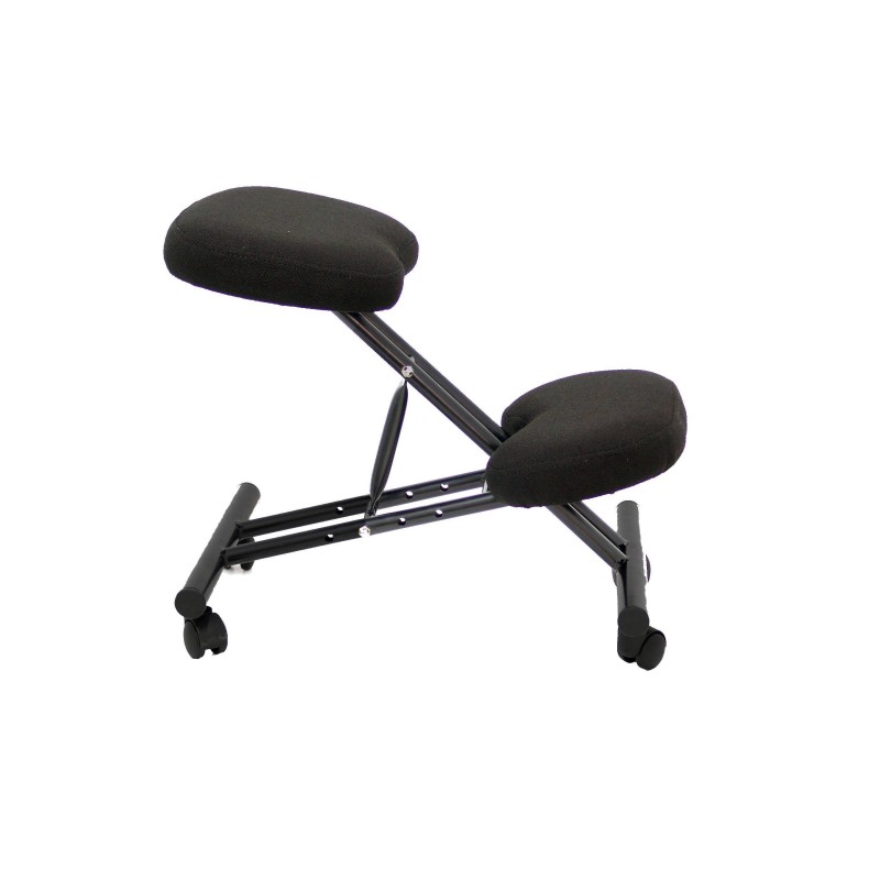 Altura máxima 65 cm y altura mínima 50 cm Asiento y rodillera tapizadas Estructura en color negro Ruedas de nylon