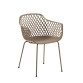 El asiento de Quinn es de plástico reciclable, con líneas redondeadas y un diseño tipo rejilla que crea un juego de luces y sombras. Además, se apoya sobre una estructura de metal con el mismo acabado. Disfrútala en interiores y exteriores.