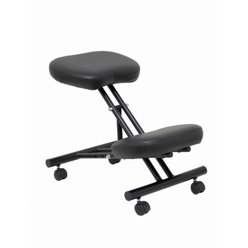 Rodillera acolchada y ergonómica Mecanismo con regulación manuel en altura de 4 posiciones. Altura máxima 64 cm y altura mínima 51 cm Asiento y rodillera tapizadas en similpiel color negro Estructura de hierro en color negro Ruedas de nailon de metrica 10