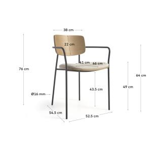 Silla con brazos de metal acabado pintado negro mate.