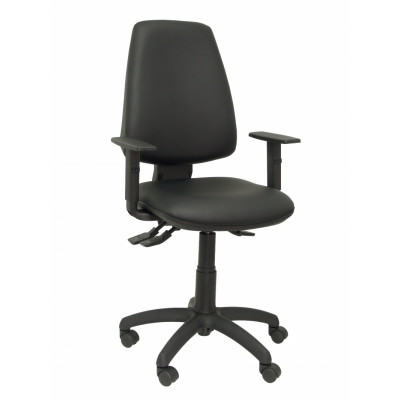 Silla de oficina ergonómica con mecanismo sincro y regulable en altura Asiento y respaldo tapizados en similpiel (BRAZOS REGULABLES INCLUIDOS) Regulable en altura mediante cilindro de gas de 14 cm Mecanismo sincro que permite la regulación del respaldo y el asiento por separado Asiento y respaldo tapizados en similpiel Base poliamida de alta resistencia de 5 radios y 55 cm de diámetro, en color negro Ruedas de nylon, giratoria 360º, telescópico color negro y brazos regulables
