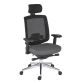 El top de la ergonomía! Con su respaldo de altura 70 cm y un cabezal regulable en altura hasta 5 cm se acaban las tensiones en la espalda! Además para un mejor confort , tiene un soporte lumbar regulable en altura hasta 6 cm y reposabrazos regulables en altura, adelante/atrás, profundidad y orientable. Y con una densidad de asiento de 70 kg/m³ , tu confort esta asegurado. Apuesta por esta silla ergonomica con un revestimiento 100% poliéster ignífugo M1 y un respaldo de malla negra muy agradable. Sus patas están fabricadas de aluminio pulido con ruedas para moqueta Ø 60 mm. Medidas: asiento An. 50 x Fon. 49 cm, regulable en altura de 49 a 58 cm. Mecanismo sincronizado ideal par un uso intensivo.