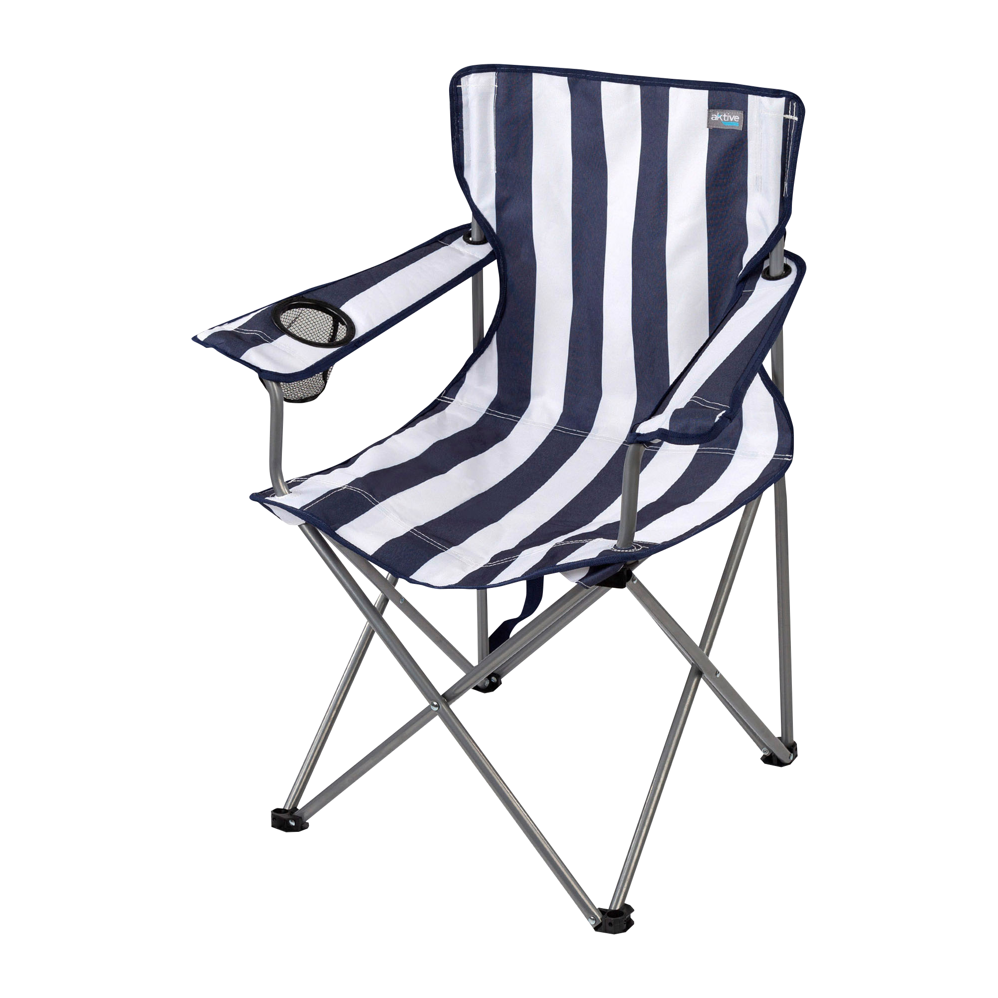 Descripción detalladaSilla de playa plegable con bandolera. Estampado marinero. Con orificio posavasos. Medidas: 64,5 x 49,5 x 82 cm.